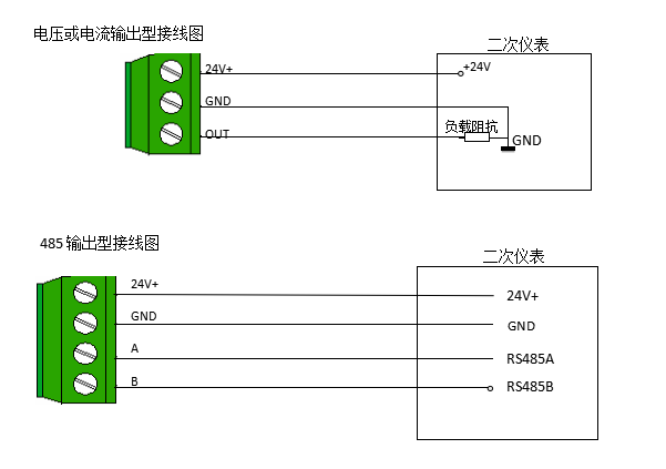 电压输出型:0~10V(三线制),电气负载≥10KΩ